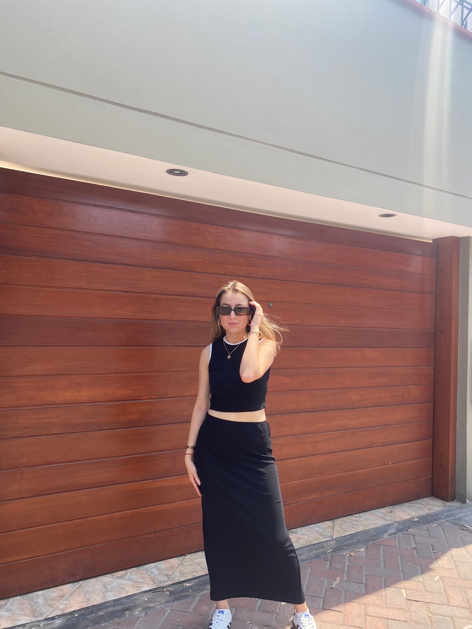 Confeccionado en tela rib modelo largo, con apertura en la parte de posterior .