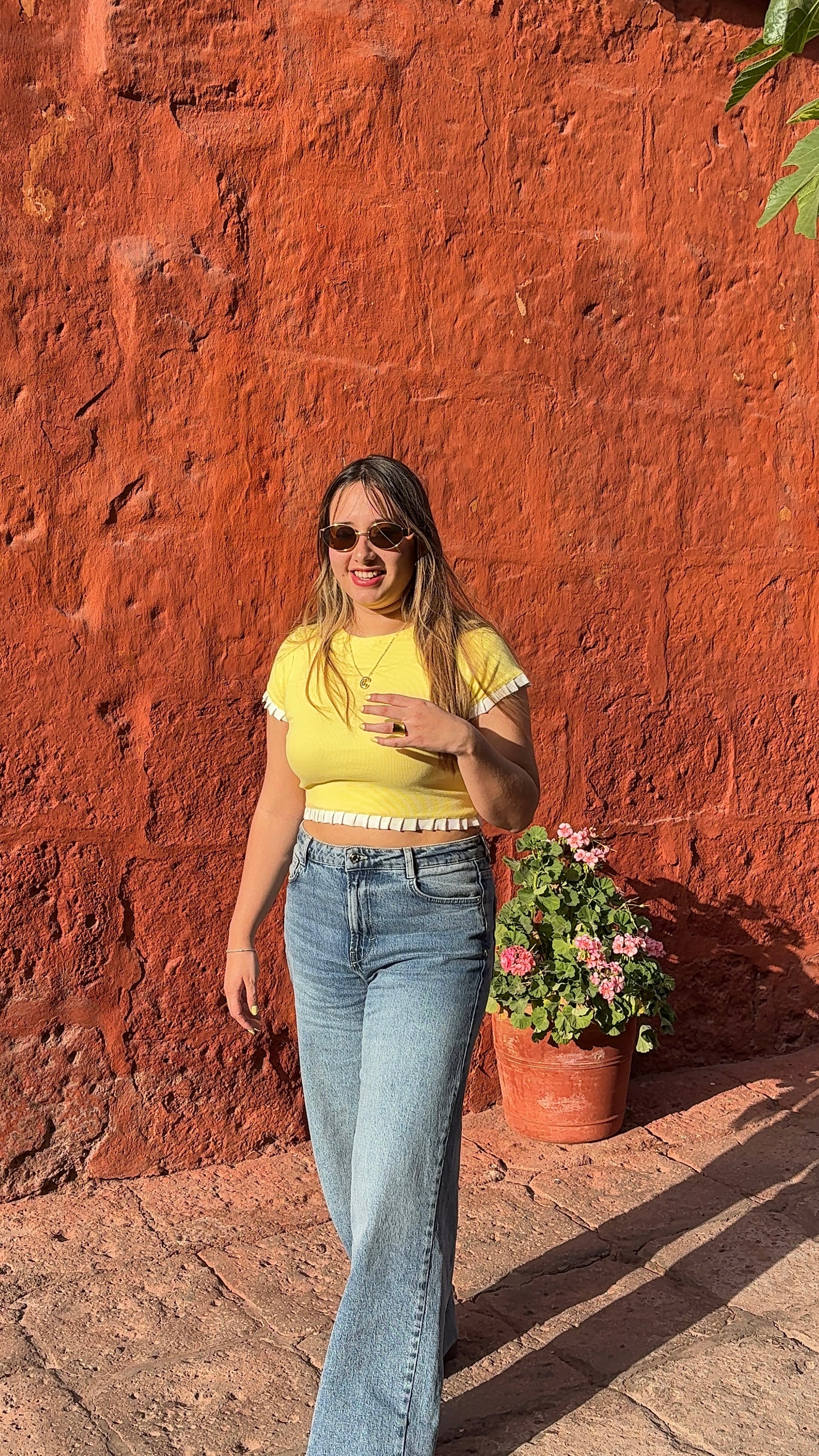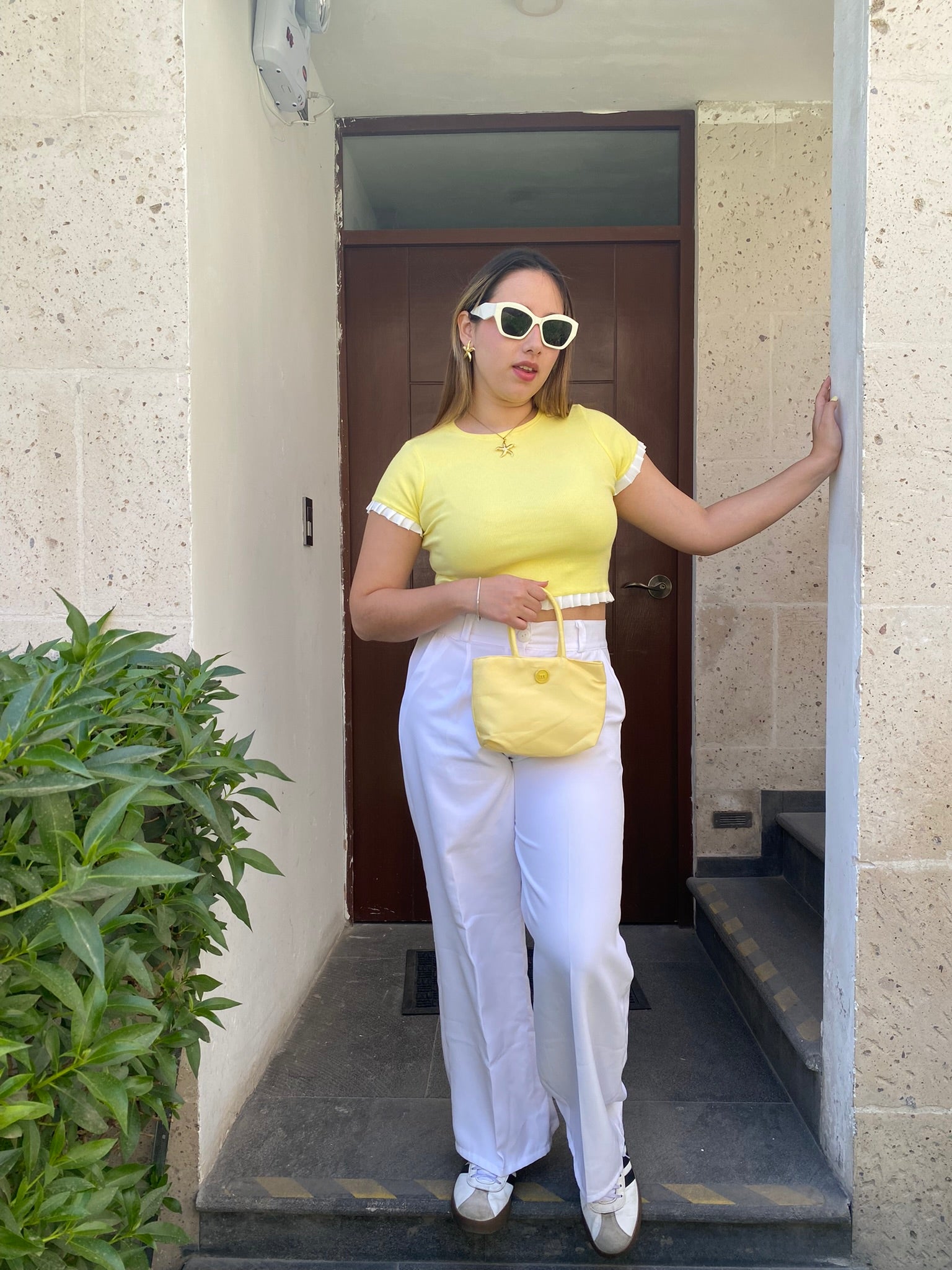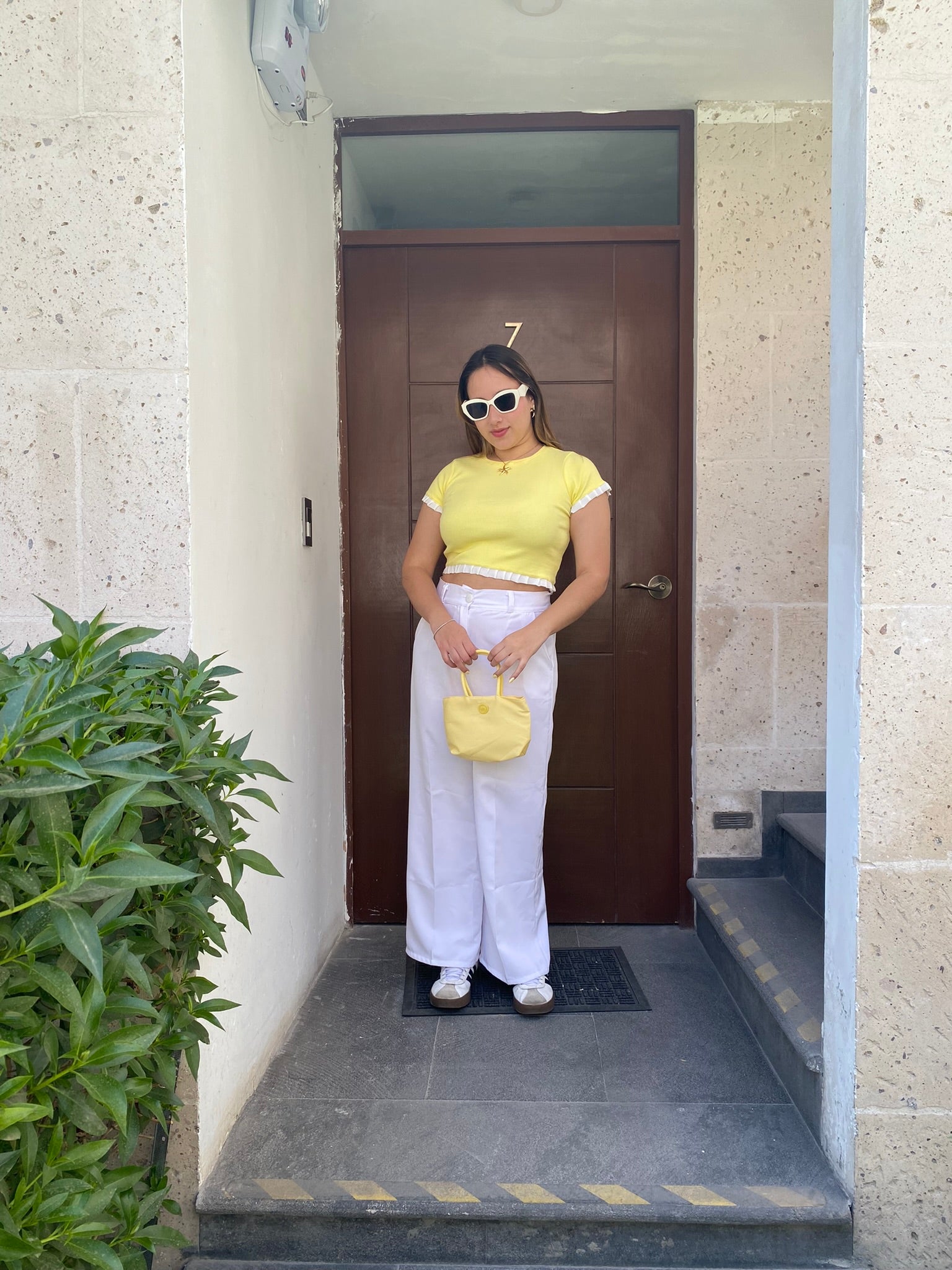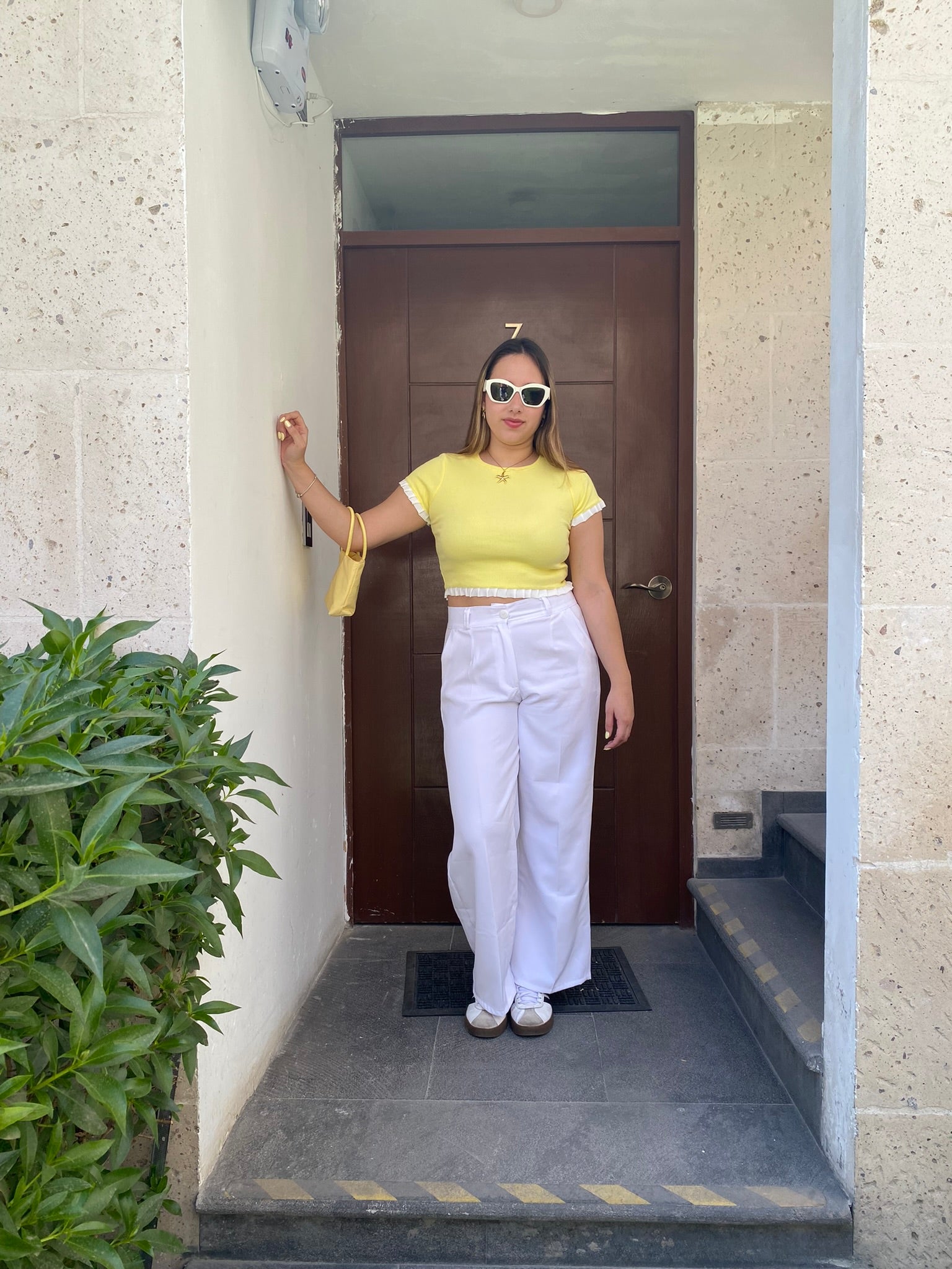 Elaborado en tela rib , modelo corto, con blondas en las mangas color perla.